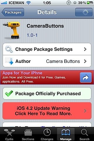 There is also a Lockscreen Launch function which lets you open the Camera app straight from your Lockscreen by holding down the Volume Up or Volume Down button. You can download CameraButtons from Cydia via BigBoss repo for $0.99 only.