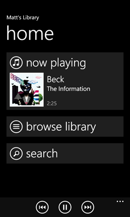 With Remote, you can control iTunes from your Windows Phone 7 device. You can browse through your iTunes music library and choose playlists, songs, and albums as if you were right in front of your computer – all from the palm of your hand. Play, pause, control the volume and more.