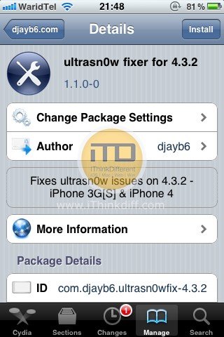 Now browse the repository added and install Ultrasn0w fixer from it. You can also search for it in Cydia once the repo has been added.