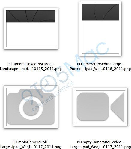 We found four interesting files in the latest SDK and they all amount to the next-generation iPad having a camera. You will notice the same shutter screen as found on the iPhone and iPod touch in addition to camera roll icons for videos and pictures. We opened up the camera shutter images and the size is 1024 x 768, which is the same resolution as the current iPad. No higher-resolution screen on iPad 2?