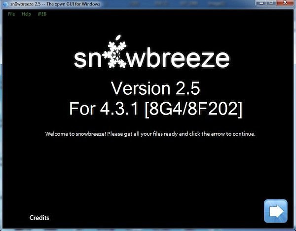 Run sn0wbreeze and click the arrow on the bottom right to proceed.