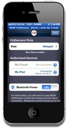 When you leave your WiFi connection at home and you’re using the iPad, the iPad will connect automatically. When you turn your iPad screen off, or go back where you have WiFi, MyWi OnDemand will disconnect. After a simple pairing, everything works automatically! Will work with 3G/3GS/4 iPhones/iPod Touches (3.1.2+) and iPad (3.2+). Requires purchase of MyWi 4.0.