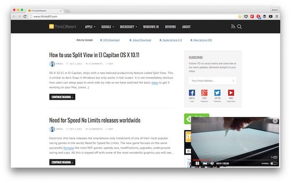 This is similar to how picture-in-picture works on iPad in iOS 9 but the extension does not work system wide. Since Chrome supports apps that can work without the browser, it might be possible for the extension to work outside the main browser window but Sideplayer does not work like that at the moment.