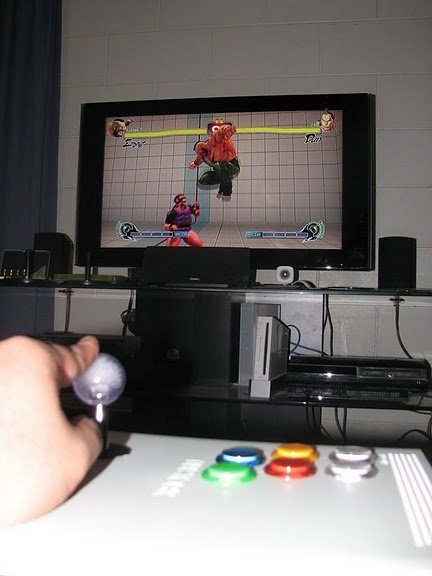 The one on the left is my latest stick. Works on the PS3/PS2/PC. Yes this means that I have an Xbox 360 plugged into my PS3