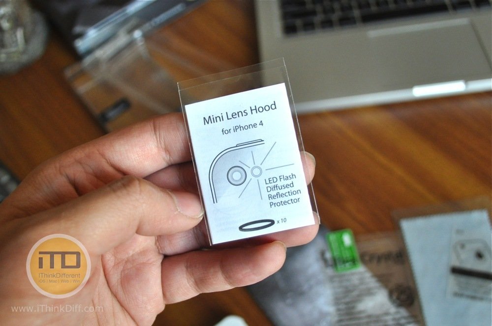 Inside a little plastic sleeve, comes a pack of 10 Mini Lens Hoods. According to the manual, it dramatically reduces the light particles from diffused reflection of the LED flash entering the camera, which can slightly increase the contrast ratio. Wow! This is definitely the first one I’ve seen which actually helps to improve an element of your iPhone 4.