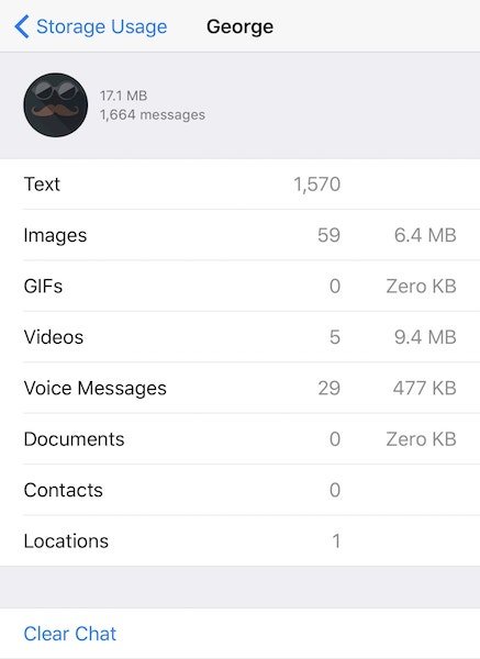 Using the new storage management feature, users can easily and quickly free up space by going to Settings >Data and Storage Usage in WhatsApp. Tapping on Storage Usage brings up a view with a list of all current chats and group conversations and the space used by the media shared in each of them. From there, simply tap on the desired chat to open a detailed break up of the types of files shared like voice messages, photos, videos, GIFs, contacts, locations and documents. To clear up certain type of media in that chat, select ‘Clear Chat’ option to mark and delete unwanted media files.