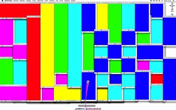 114.psd Type is a simple typography which I designed once again thanks to Mac OS X (maybe it reminds to Folder Type, also created with Mac OS X). The idea for this type came in when seeing that this operative system memorizes the position of any file or window when you minimize and maximize it. So I created 114 photoshop files (I only used six colors, I played with all possibilites in RGB with the numbers 0 and 255, excepted 0,0,0 and 255,255,255). Then I placed and ordered the files in the right position before minimizing them on the dock. And finally I captured the screen maximizing every file.