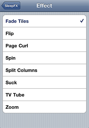 Brand new Cydia tweak called SleepFX brings some really cool screen dim effects to your iOS device allowing to put your device to sleep in style. The app as been developed by the makers of TV Tube Sleep and has stunning effects with a handful of options to customize. The TV Tube effect now comes with sound along with Spin effect, Splitting columns, Fading tiles and some other amazing effects. You can easily control the animation speed and sound of the chosen effect.
